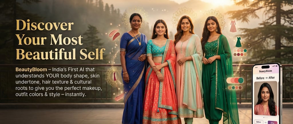 In a country as beautifully diverse as India, where every region boasts unique skin tones, body shapes, hair textures, and cultural aesthetics, the concept of beauty has never been one-size-fits-all. From the snowy peaks of Kashmir to the sun-kissed shores of Kanyakumari, Indian women embody a stunning spectrum of beauty. Yet, for too long, the beauty and fashion industry has offered generic advice that often overlooks our individual roots and identities. That era ends now. Introducing BeautyBloom—India’s First AI that deeply understands YOUR unique body shape, skin undertone, hair texture, and cultural roots to deliver perfectly personalized makeup, outfit colors, and style recommendations instantly.